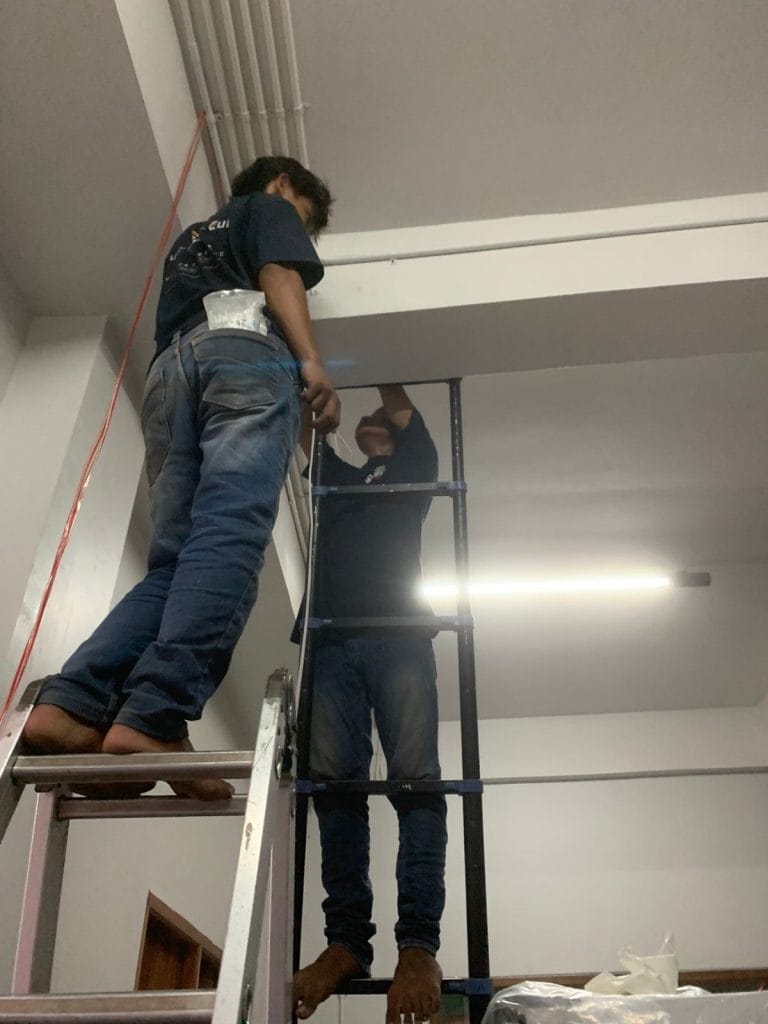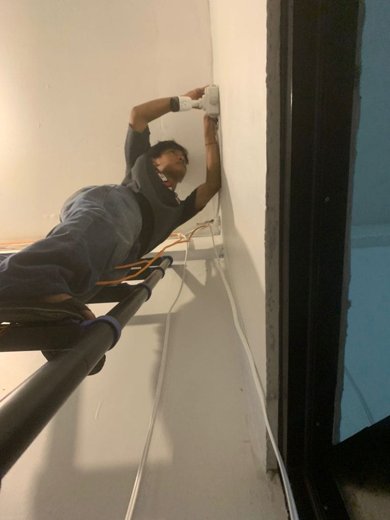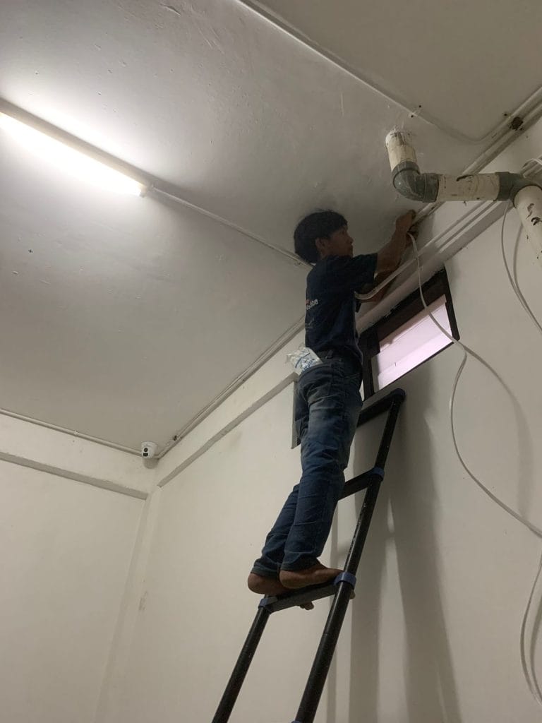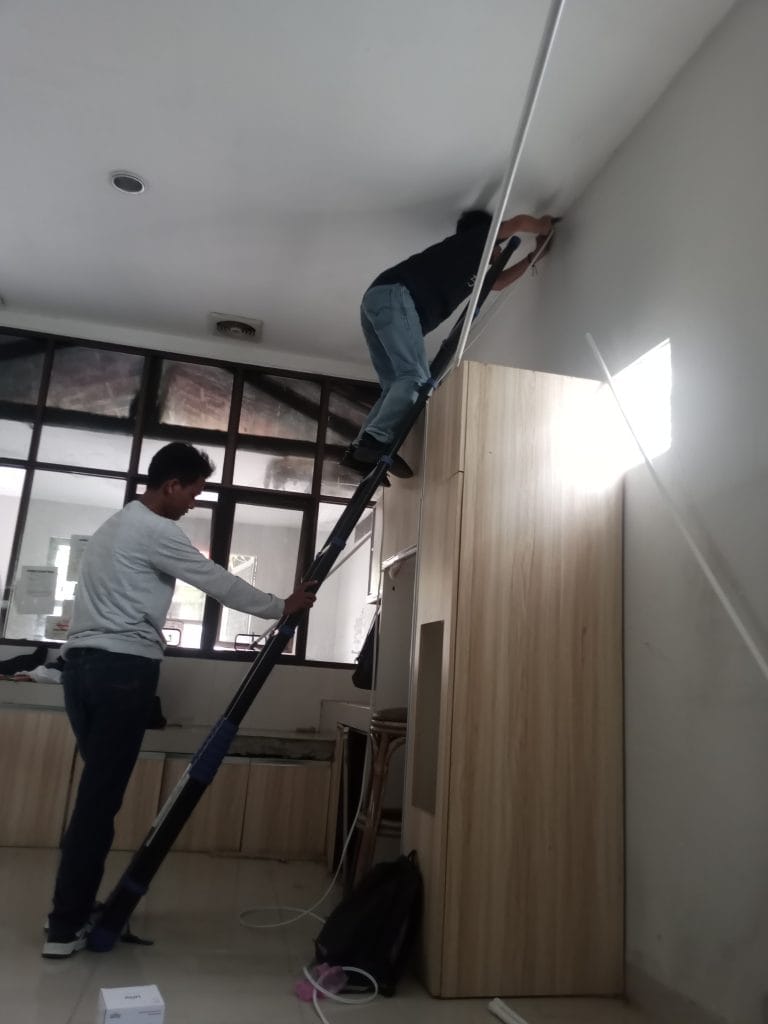- Pemasangan Kamera: Kamera di pasang di titik strategis yang telah di tentukan selama survei, seperti di sudut-sudut ruangan yang memaksimalkan cakupan area.